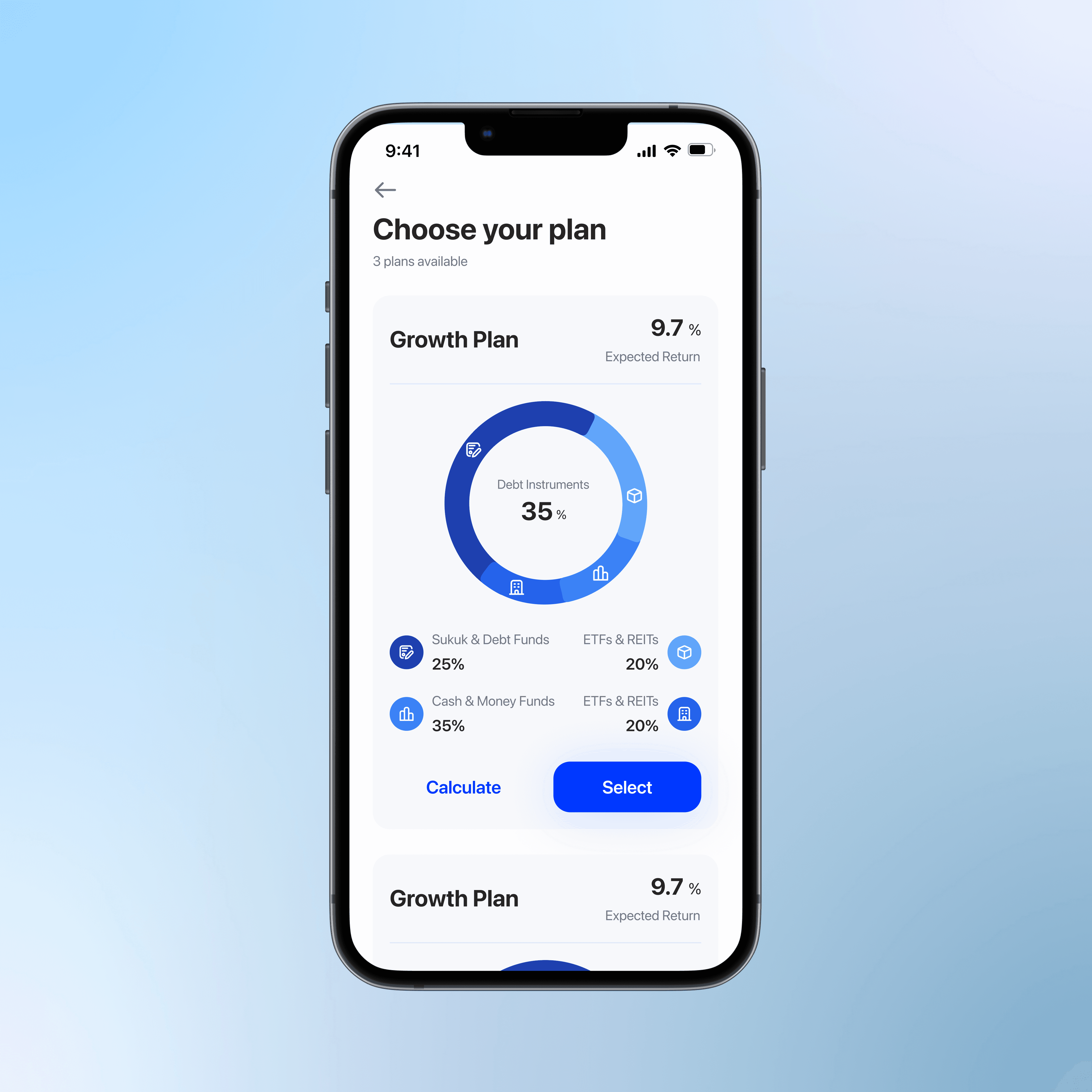 Invest now Using smart investments with Customized Investment Options (Growth, Balanced, Conservative) including diversification strategy (Cash& money market, Equity, ETFS, Sukuk)